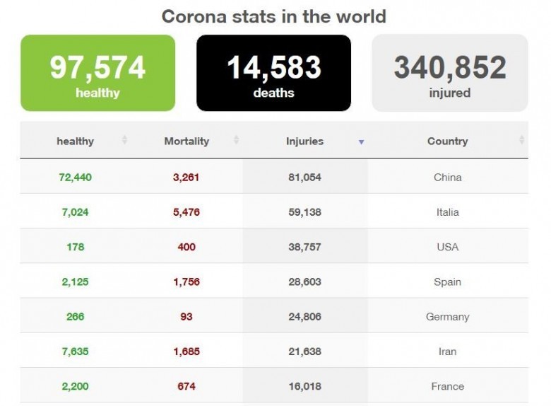 Arab News Corona Spread Statistics worldwide - Update Pulse location Abid Latif Admin posted on 5 years ago — updated on 1 second ago 2,039 views Corona spread in the world stats Today Update 22.03.2020 Corona Update location Statistics worldwide Comments Comment 0 comment Best Oldest Newest Write the first comment for this!